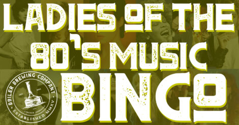 Join us at BOILER SOUTH at 7 PM on Thursday, April 16th for Ladies of the 80’s Music Bingo! Whitney? Cyndi? Madonna? Tina? Yes. Yes. Yes. And yes. And more!